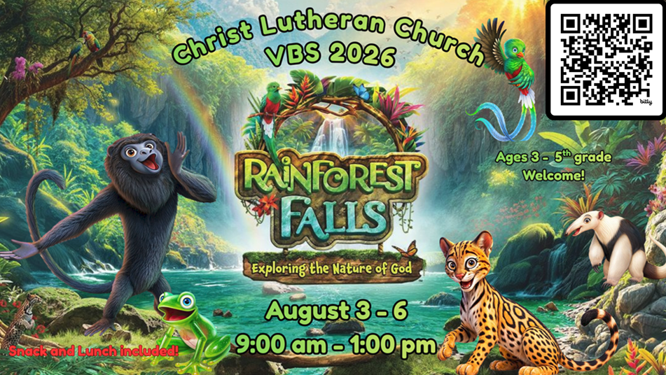 REGISTRATION IS OPEN! Rainforest Falls helps kids explore what it means to trust Jesus in a wild world. We gather at 9 AM for large group, followed by small group lessons, games, and crafts. A kid-friendly lunch is served at noon, with a final gathering and send-off at 1 PM.
